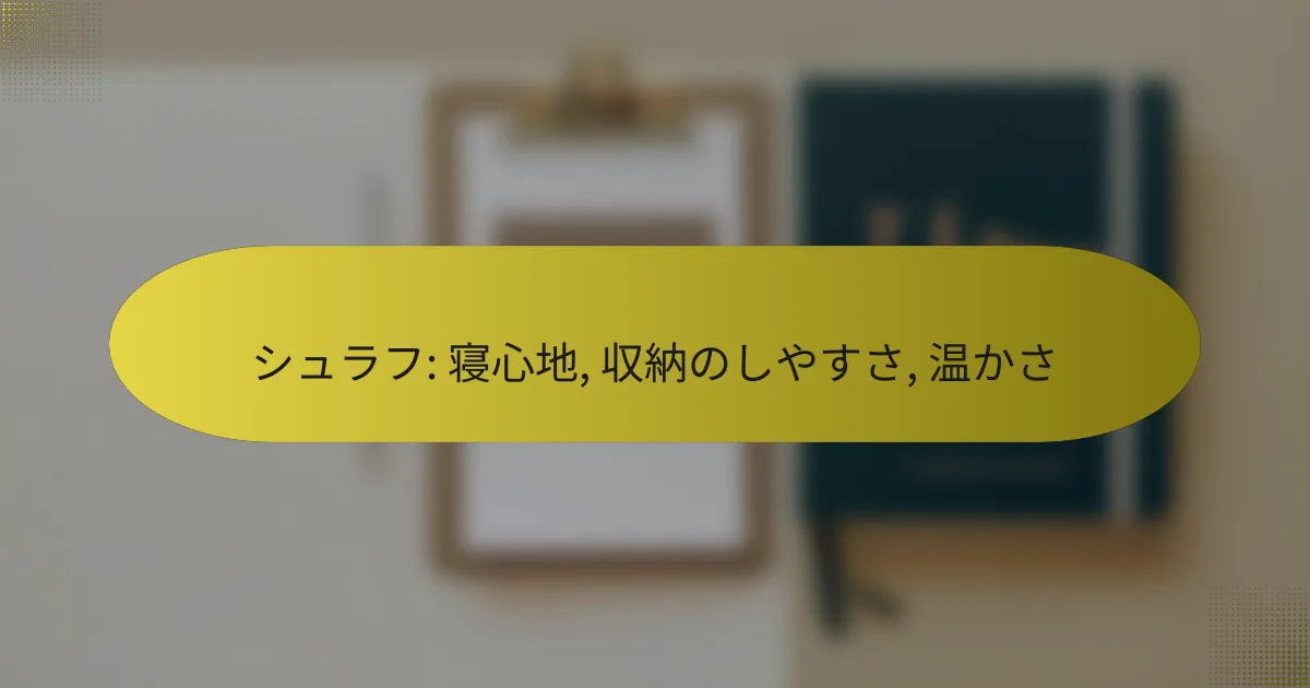 シュラフは、寝心地、収納のしやすさ、温かさの三つの要素が重要です。寝心地はマテリアルやデザインに依存し、収納のしやすさはサイズや重量によって決まります。また、温かさは温度範囲や断熱材の種類に影響され、快適な睡眠環境を提供します。