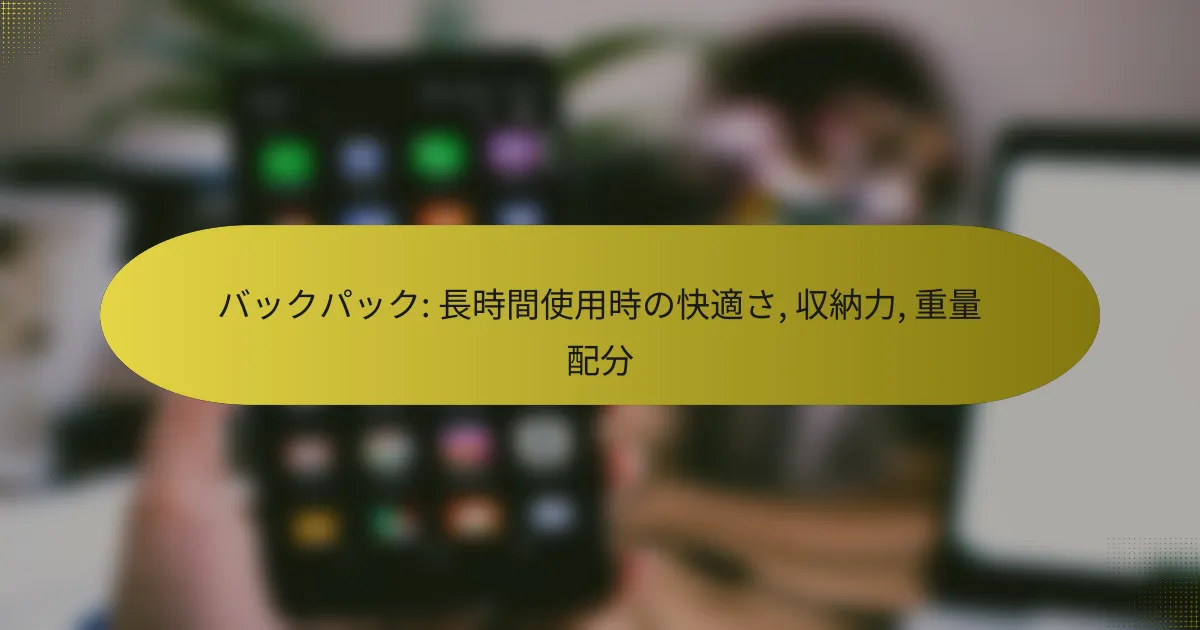 バックパックを選ぶ際には、長時間使用時の快適さ、収納力、そして重量配分が重要なポイントです。快適さは背負い心地や通気性に影響され、収納力は容量やポケットの配置によって決まります。また、適切な重量配分を考慮することで、体への負担を軽減し、より快適な移動が可能になります。